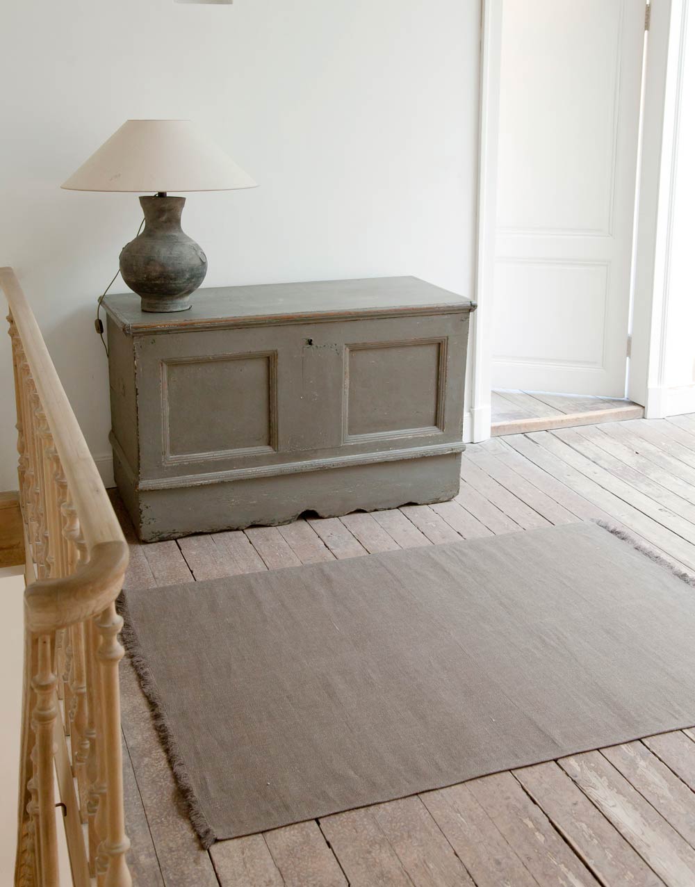 리넨 러그의 심플한 패턴은 어느 공간에도 어울리는 스타일입니다.