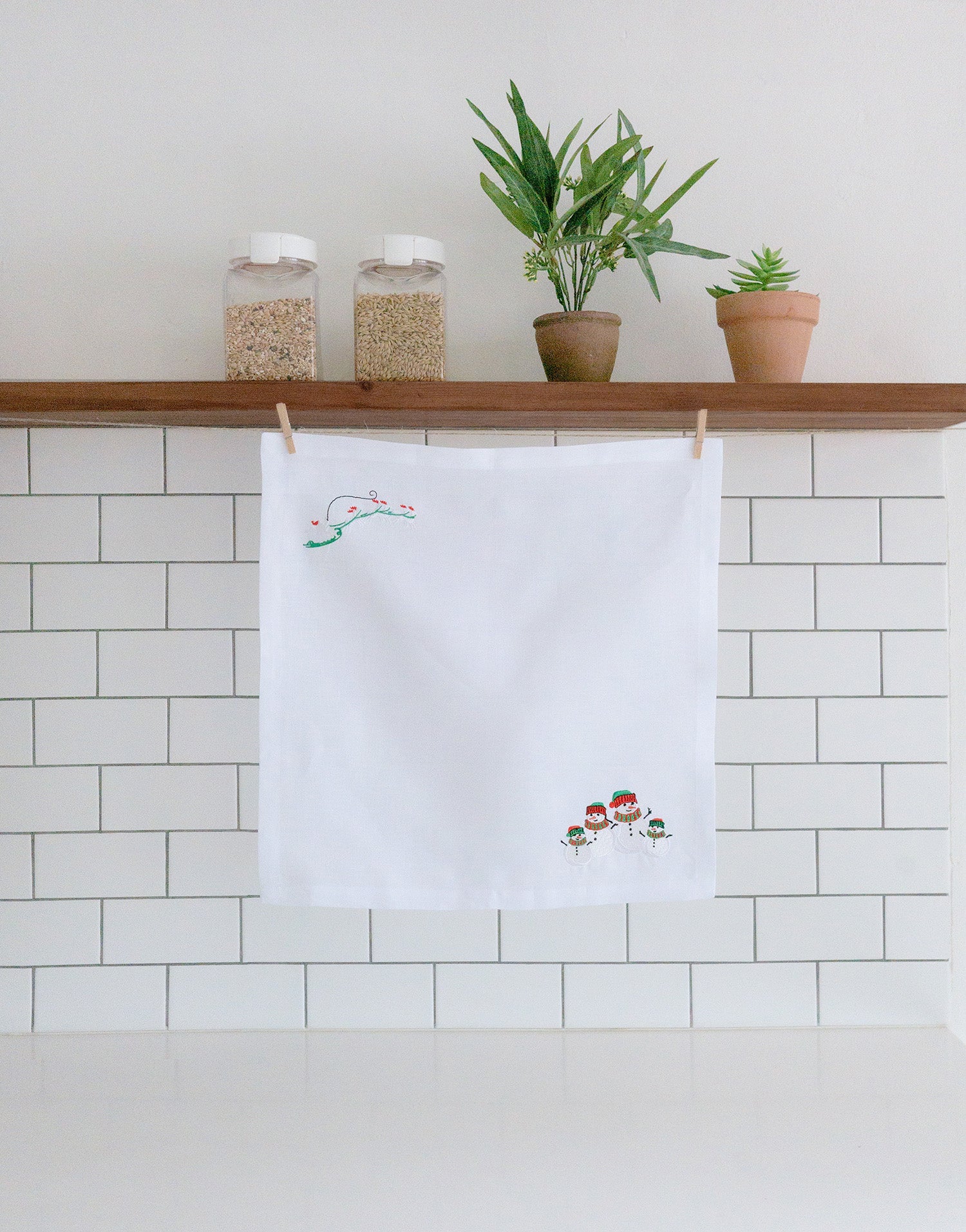 [Upper Class] 프랑스 자수 리넨 센터피스 눈사람 가족