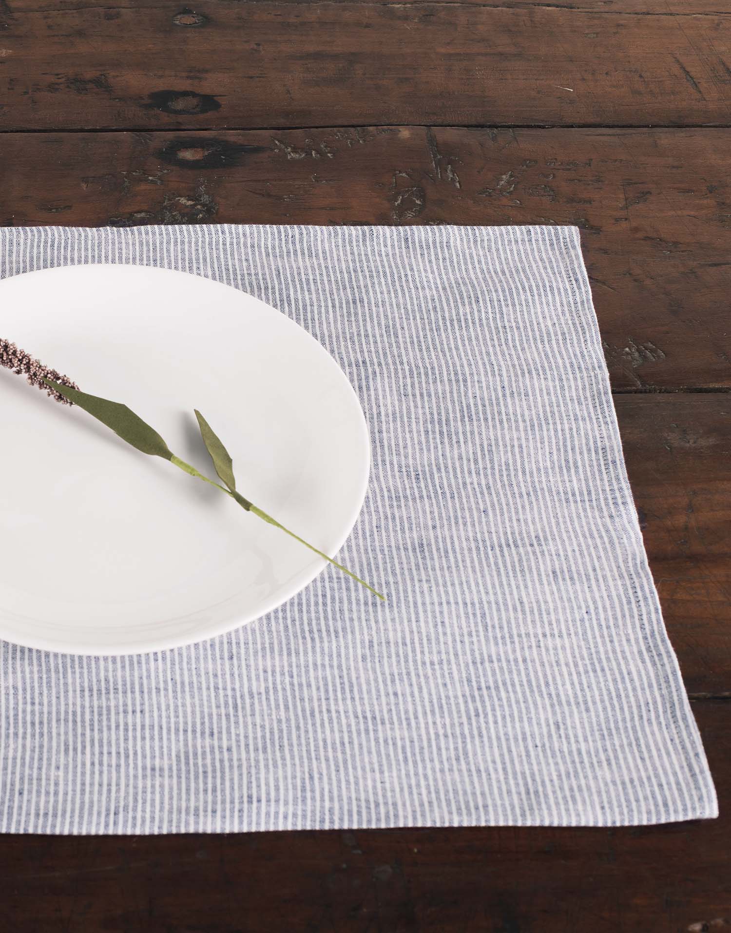 다크 블루와 그레이가 믹스된 줄과 오이스터 핀스트라이프가 세련되게 테이블을 꾸며줍니다.