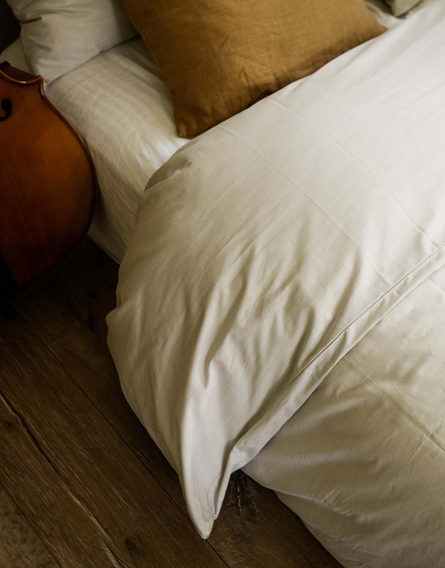 세계를 선도하는 이태리 방직 기술로 제작하였고 인단스렌(Indanthren) 염색은 선명하면서도 편안하고 미려한 Pale 색채를 보여주며 머서라이즈드 (Mercerized) 기법은 코지하고 부드러운 감촉의 침구를 만들고 있습니다.