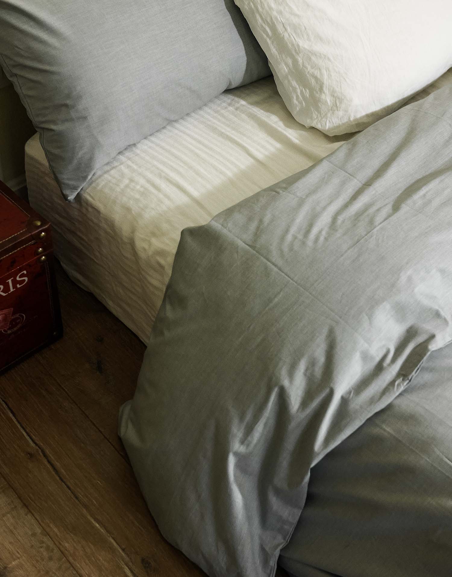 세계를 선도하는 이태리 방직 기술로 제작하였고 인단스렌(Indanthren) 염색은 선명하면서도 편안하고 미려한 Pale 색채를 보여주며 머서라이즈드 (Mercerized) 기법은 코지하고 부드러운 감촉의 침구를 만들고 있습니다.