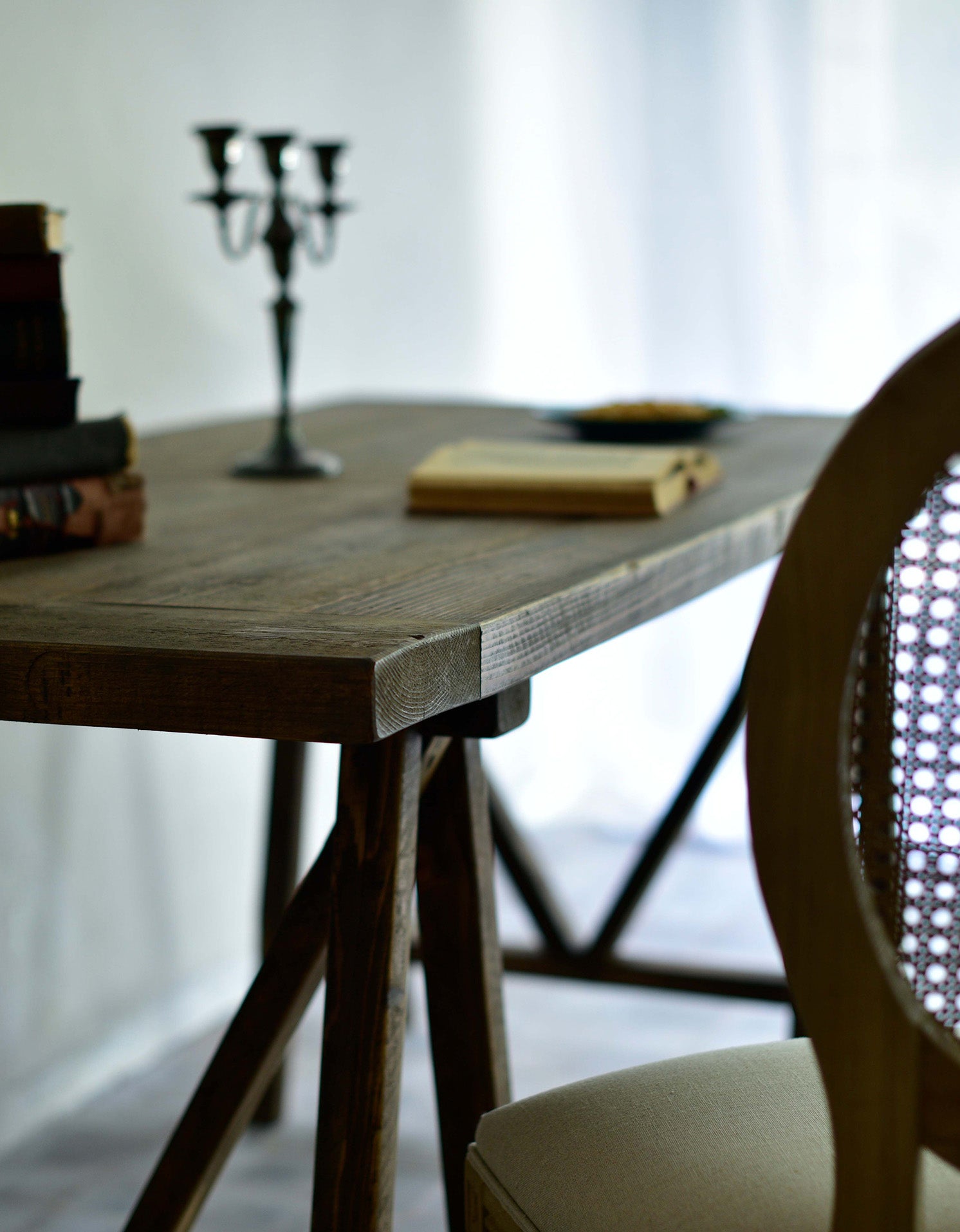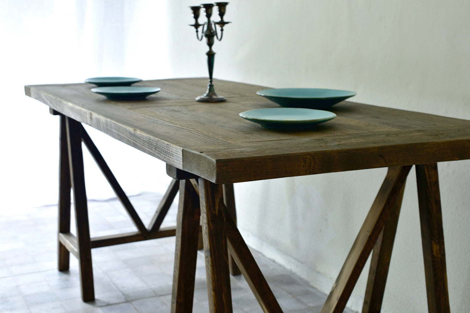 이태리 아티즌이 완전히 수작업으로 제작하는 구다모의 트레슬 테이블은 건축양식의 구조처럼 매우 튼튼하며 심미적인 디자인입니다.