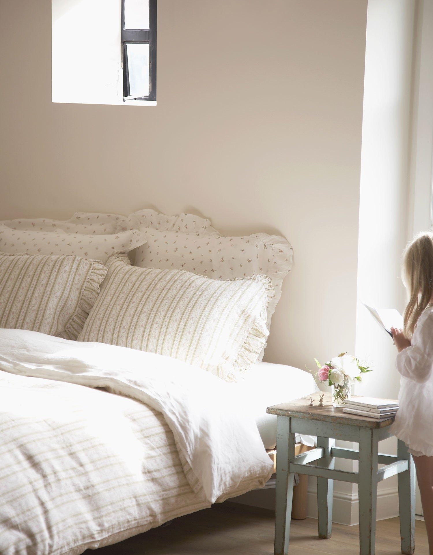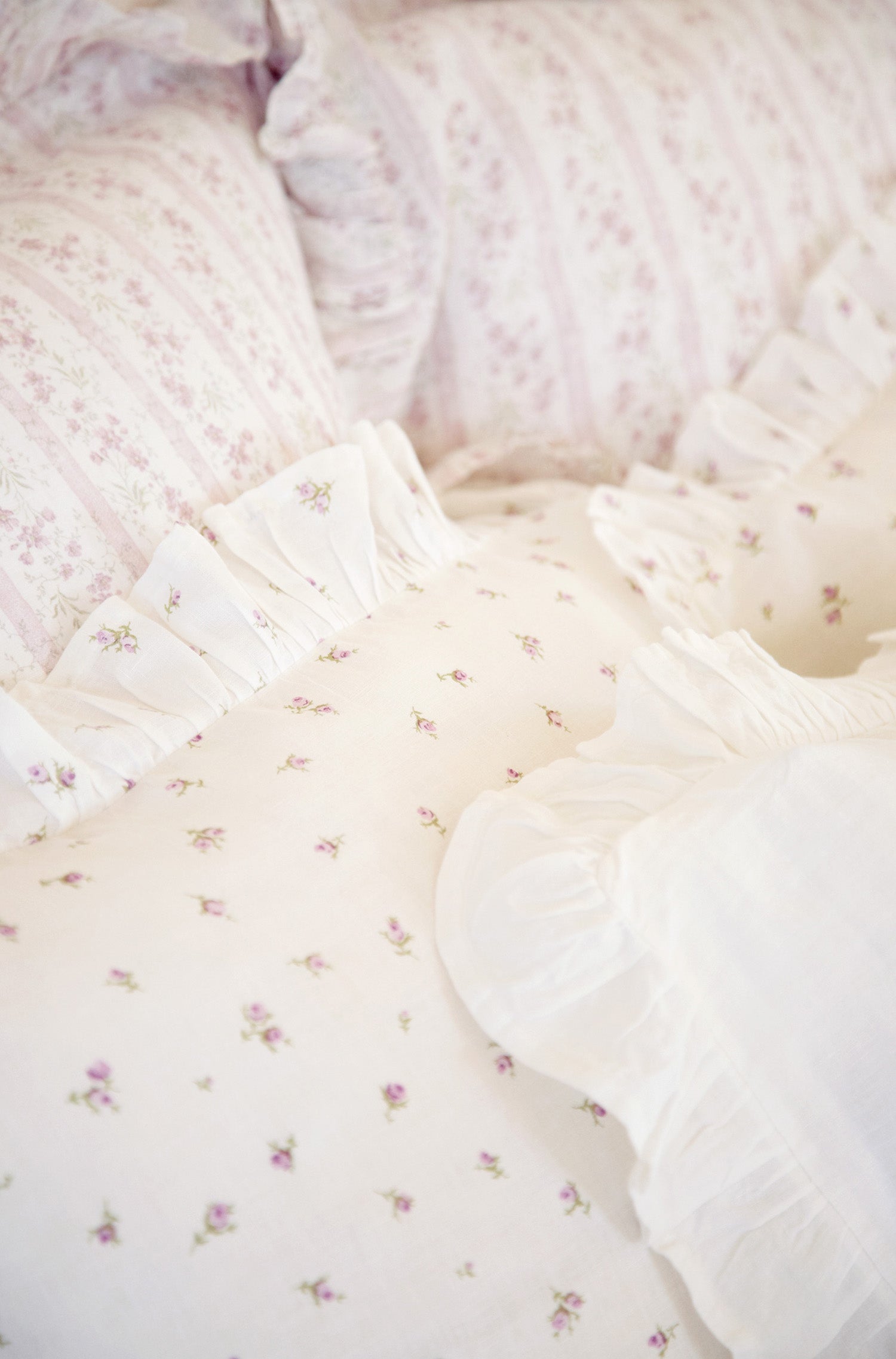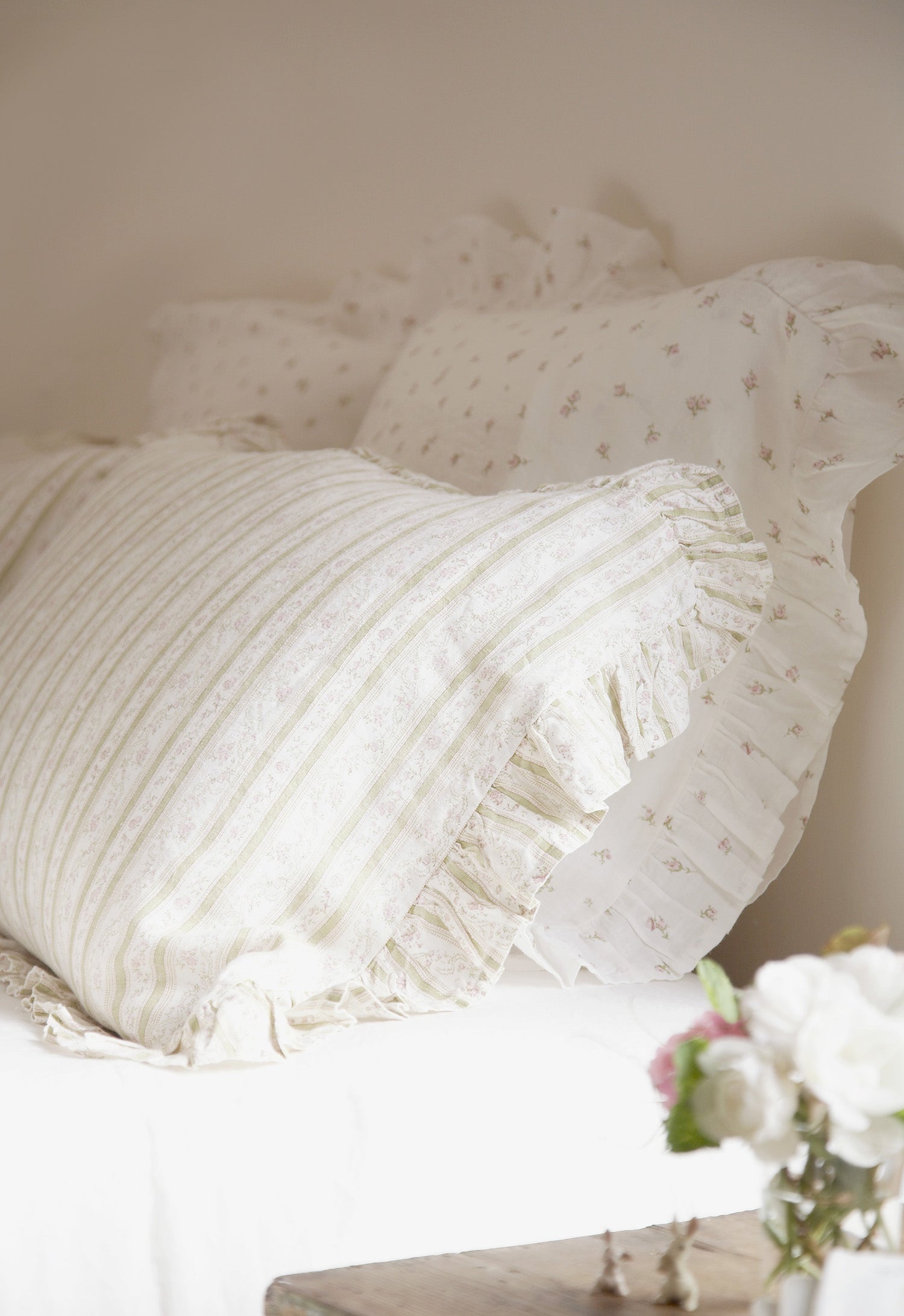 베개 커버와 쿠션 커버는 약 6cm 러플의 지퍼식