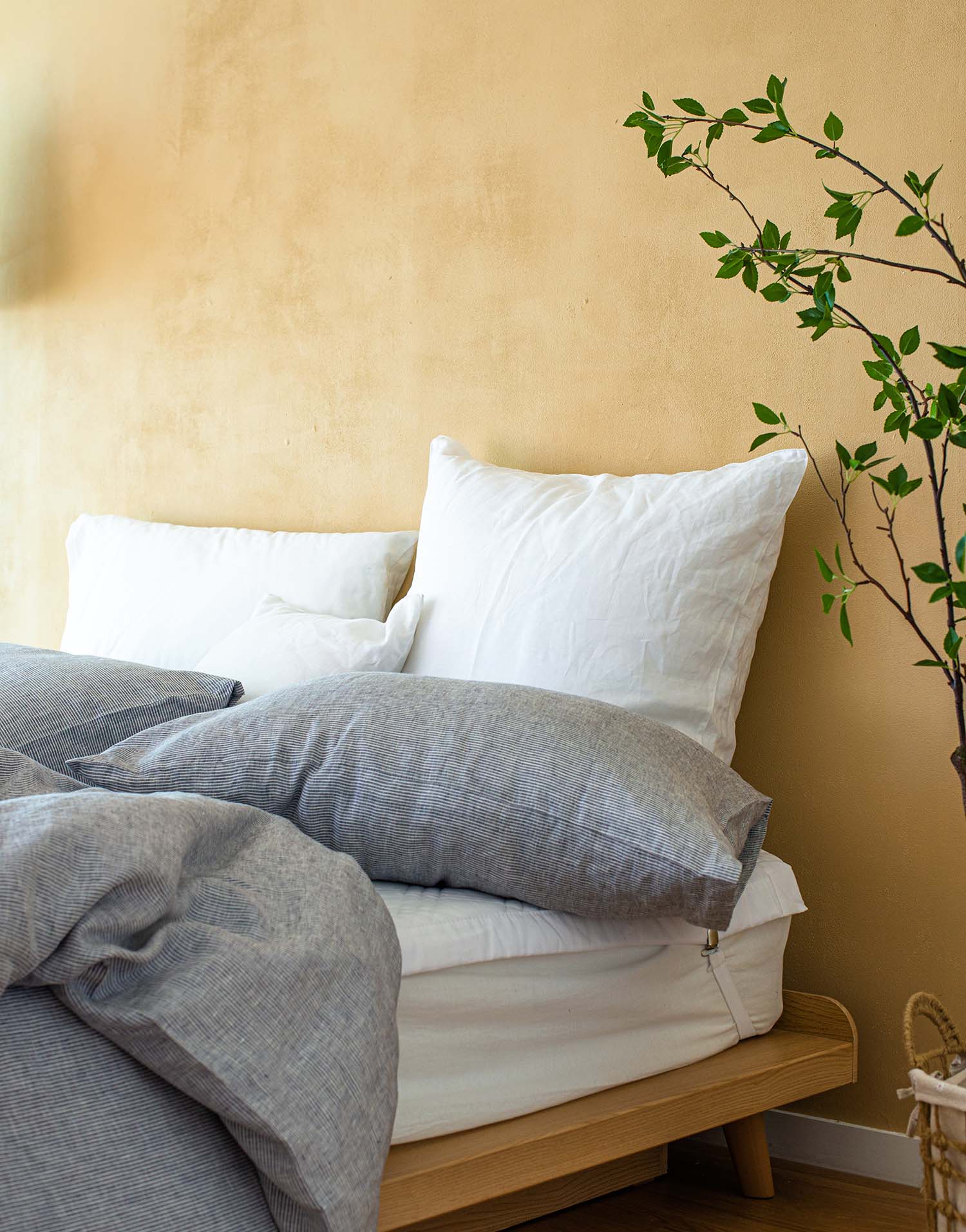 • 180 g/m² (침구용 리넨은 보통 120-200 g/m² 정도 )• SS(160x210cm) / Queen(200x220cm) / King(240x230cm)• 지퍼 마감