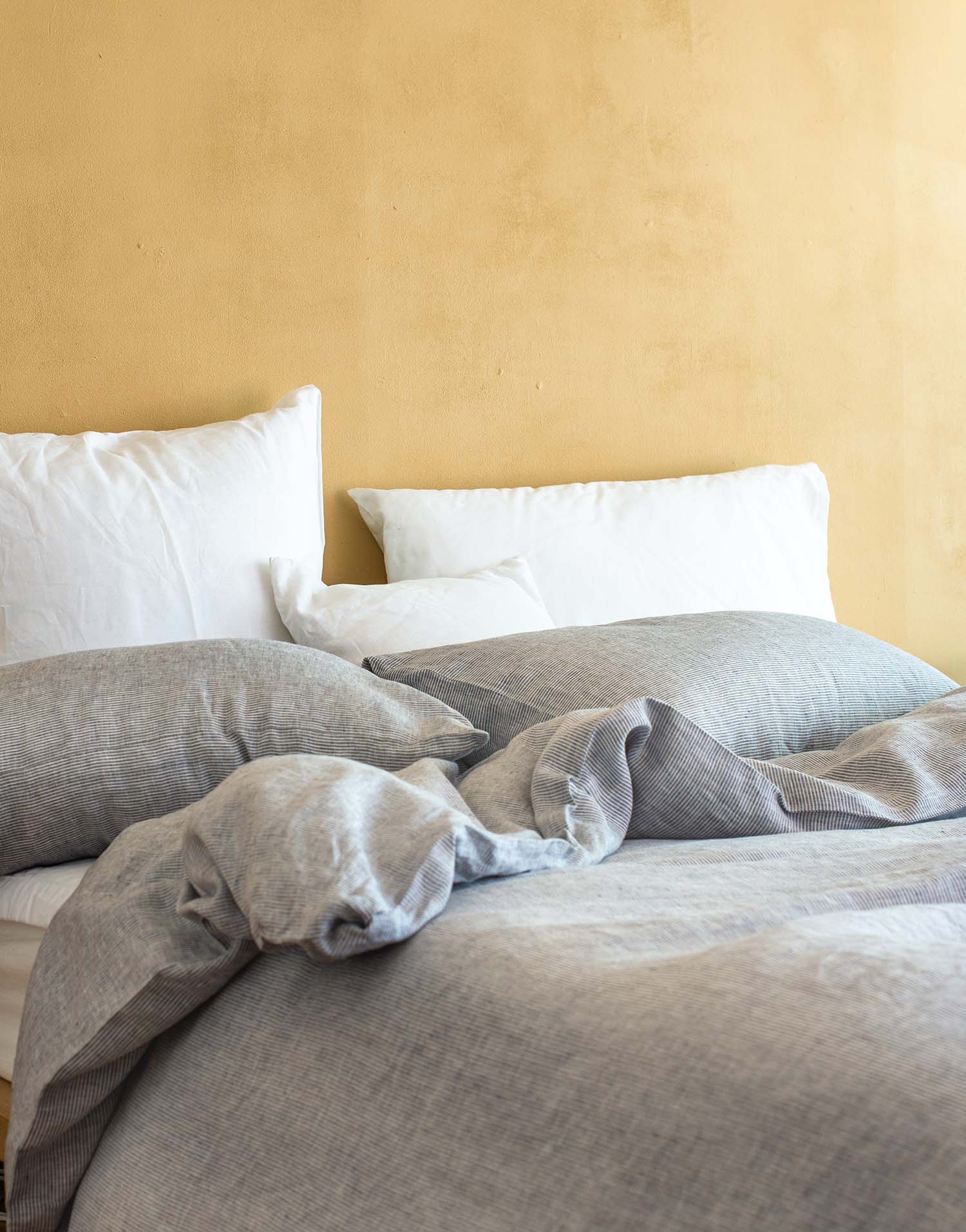 잔사없는 이태리 리넨 이불 커버 발렌 핀스트라이프 리비드 & 오이스터 이불커버 & 세트
