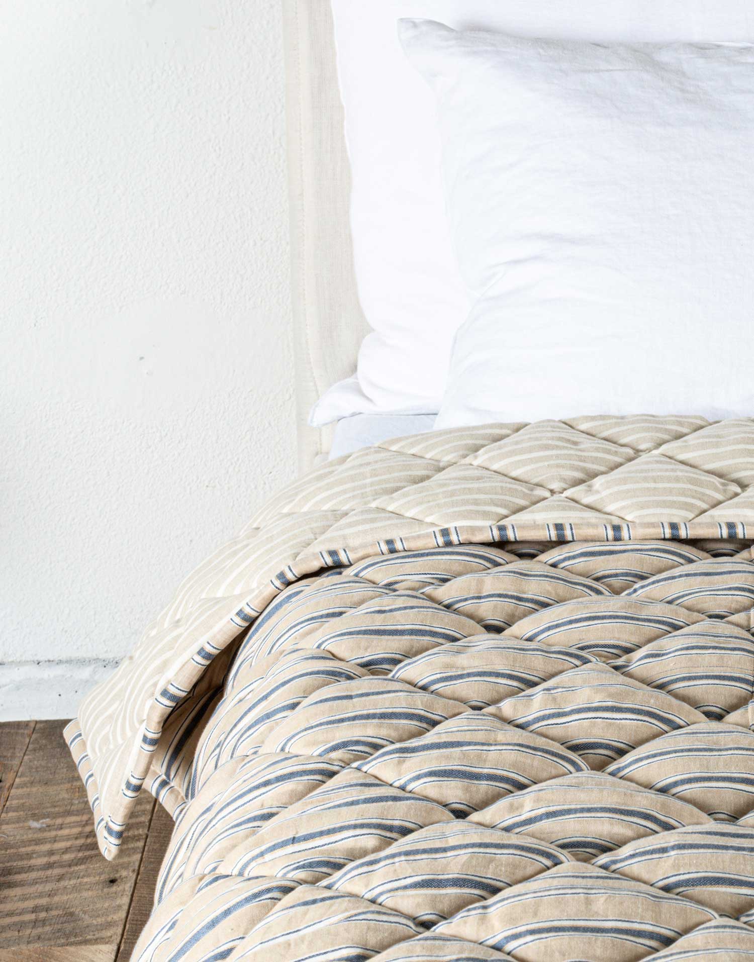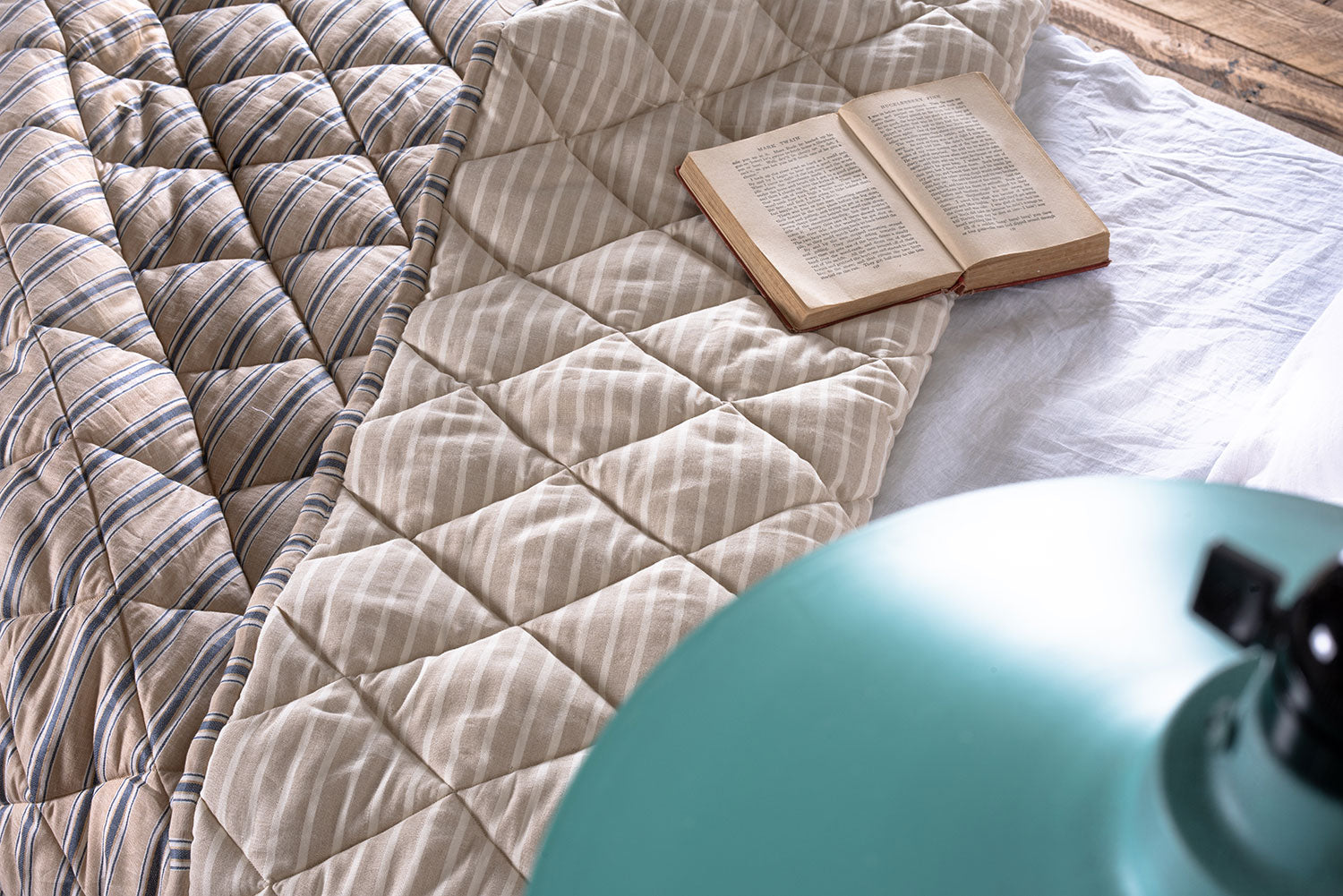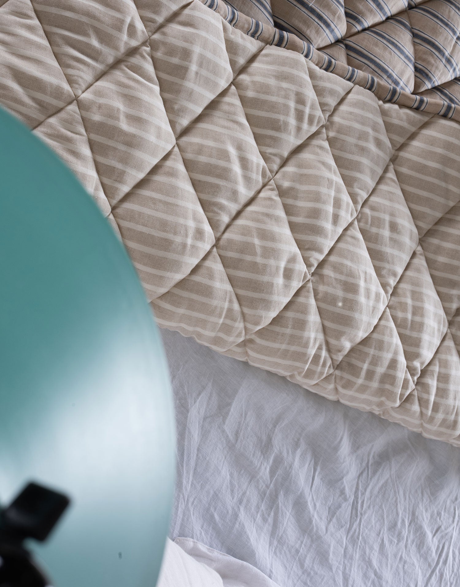 양면이 다르게 디자인된 스트라이프는 계절과 인테리어에 맞게 큐레이션 할 수 있으며 리넨과 면이 믹스된 소재는 겨울에는 따뜻하고 여름에는 시원한 잠자리를 마련해 줍니다.