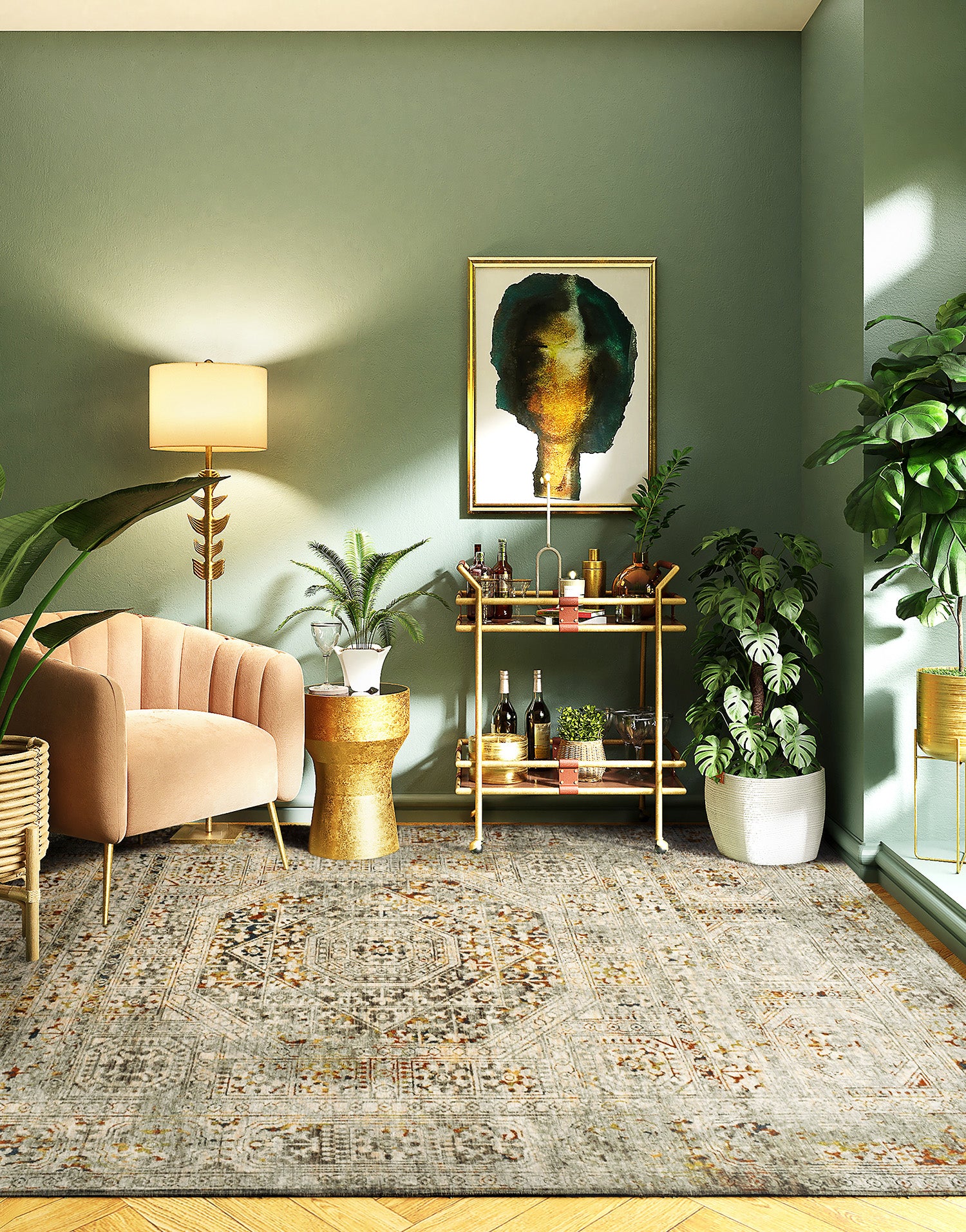 REXURE의 멋진 파티나 디자인 러그를 소개합니다. 현대적인 집에 완벽하게 어울리는 이 러그는 클래식한 페르시안 실크 러그 패턴에 르네상스 건축물의 파티나와 현대적인 요소를 더한 추상적인 디자인으로 제작되어 눈길을 끕니다.