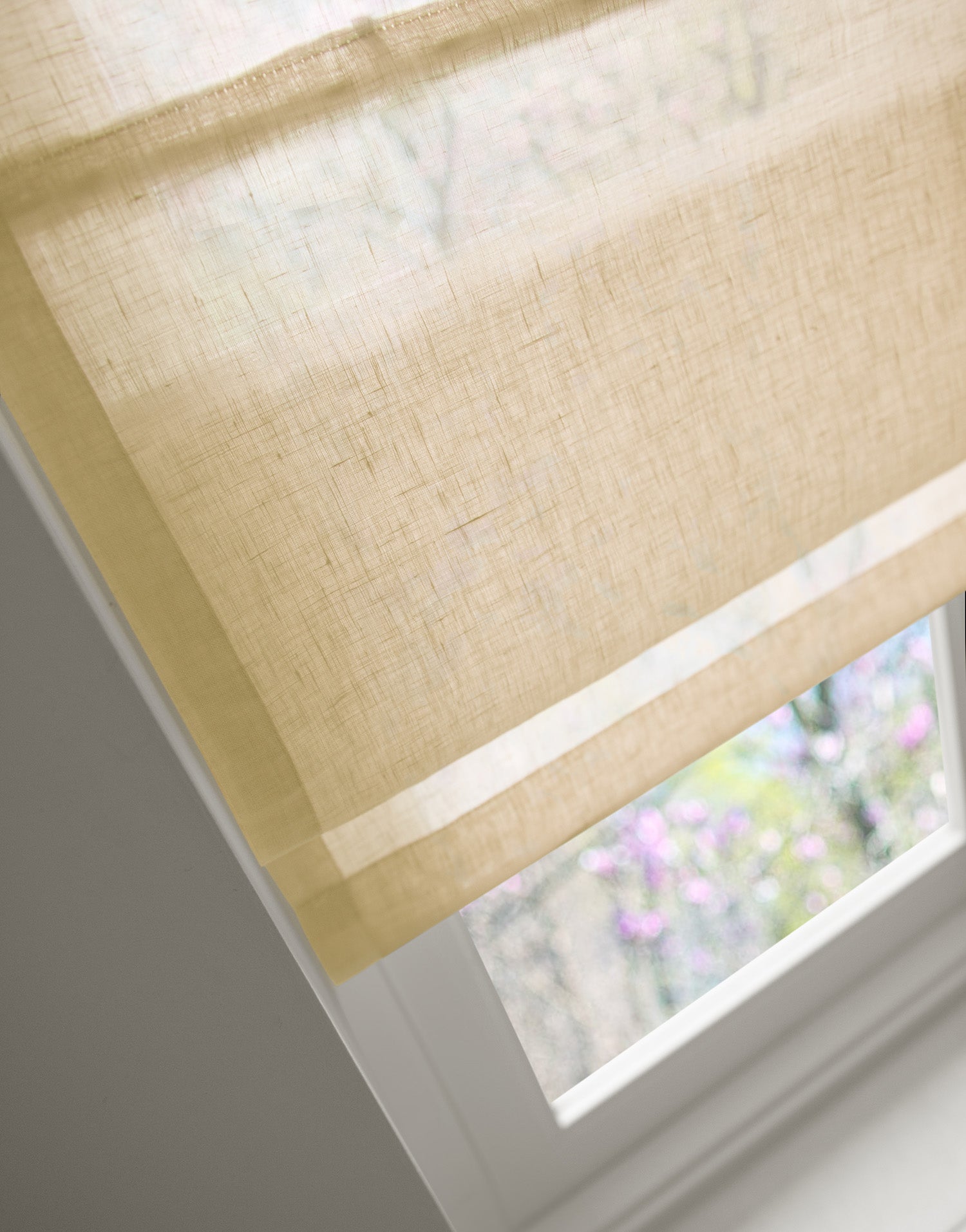 토스카나의 아침 햇살을 담은 GUDAMO 퀸트에센셜 이탈리아 리넨 오르비에 로만쉐이드는 고급 천연 리넨의 씨실과 날실의 고르지 않은 직조가 자연광과 반응해 작은 창에도 빛과 그림자의 섬세한 변화를 선사합니다.