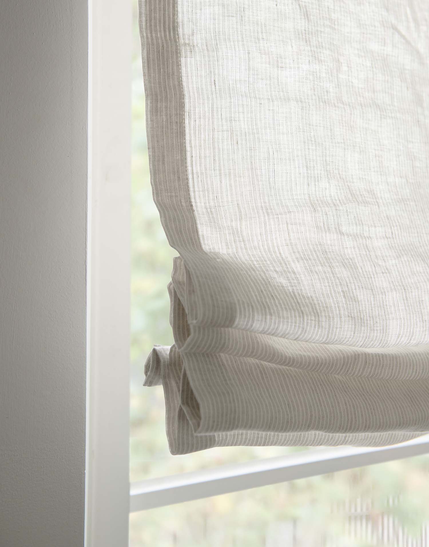 손끝에 닿는 자연스러운 워싱된 텍스처와 실 하나하나가 공들여 엮인 이 핀스트라이프는 시어보다 약간 두께감이 있어 비치지 않으면서도 답답하지 않고, 빛과 프라이버시가 절묘하게 조화를 이루는 컬렉션입니다.