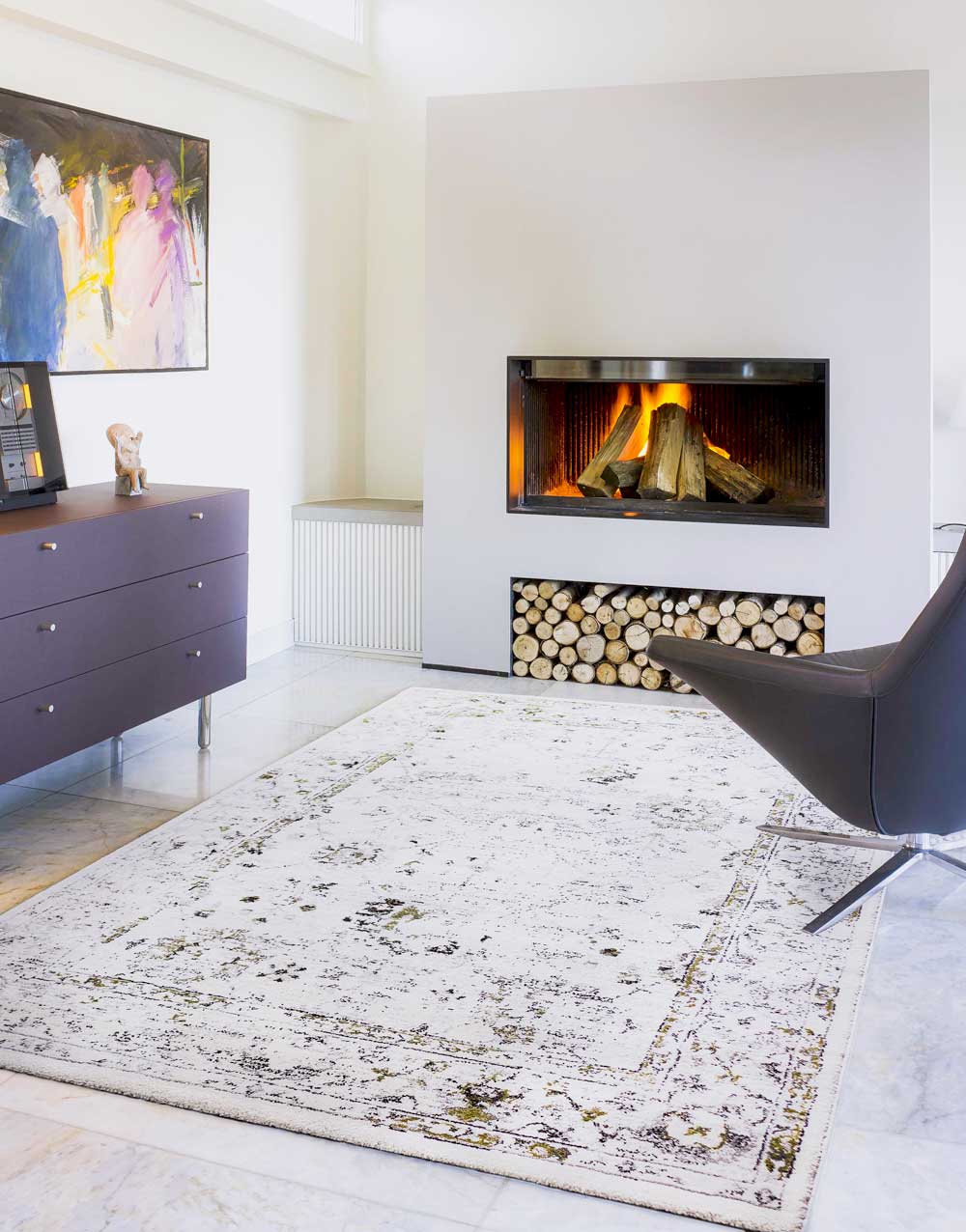 심플을 강조하여 자칫 밋밋해질 수 있는 모던한 공간을 어떻게 하면 좋을지 고민이라면 유럽과 미국에서 새로운 러그 디자인을 주도하는 디스트레스 스타일을 깔아 보시기 바랍니다.