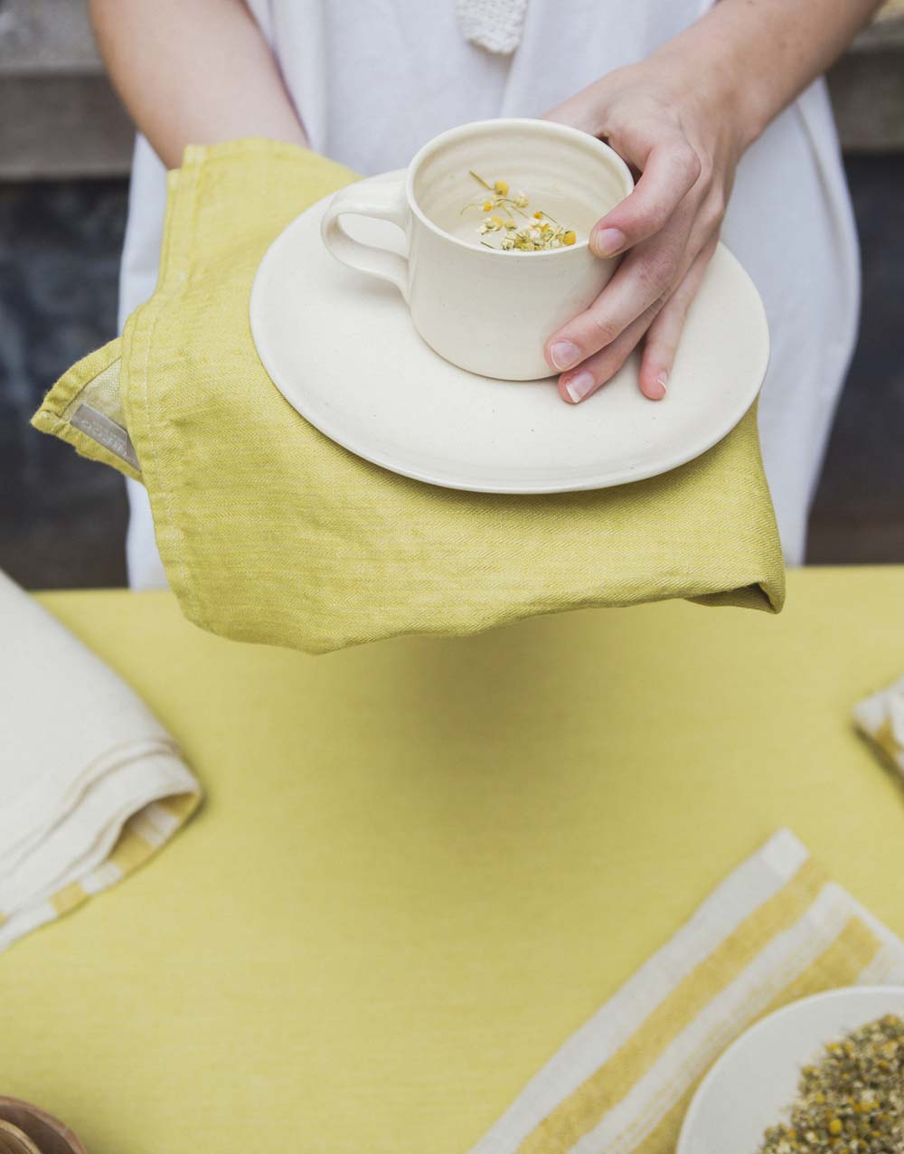 더 매뉴팩토리의 파트너 이름을 딴 제품으로 파티오 스트라이프와 라이브러리 스트라이프가 믹스 앤 매치 코디 제품으로 디자인되었으며 솔리드 머스타드의 헤링본 텍스처의 제품입니다.