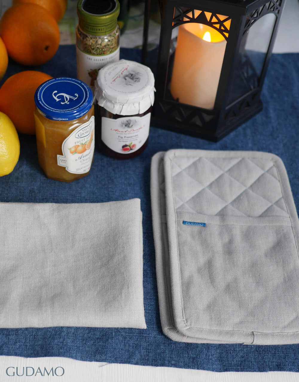 팟홀더와 티타월 세트 에비게일은 밝고 생동감 있는 컬러와 내구성이 좋은 리넨 소재로